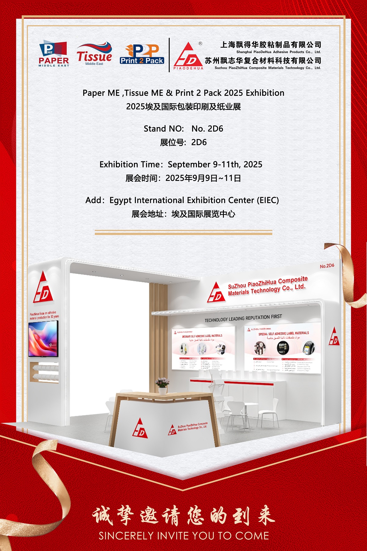 SuZhou PiaoZhiHua sangat antusias untuk berpartisipasi dalam Pameran Paper ME, Tissue ME & Print 2 Pack 2025, sebuah platform regional utama untuk industri pengemasan, percetakan, dan kertas, yang diadakan dari tanggal 9 hingga 11 September 2025, di Egypt International Exhibition Center (EIEC) di Kairo. Sebagai pemasok terkemuka bahan label berperekat, Piaozhihua akan memamerkan rangkaian lengkap produk perekat biasa dan khusus di Booth No. 2D6, menyoroti solusi yang dirancang untuk aplikasi standar dan menuntut.